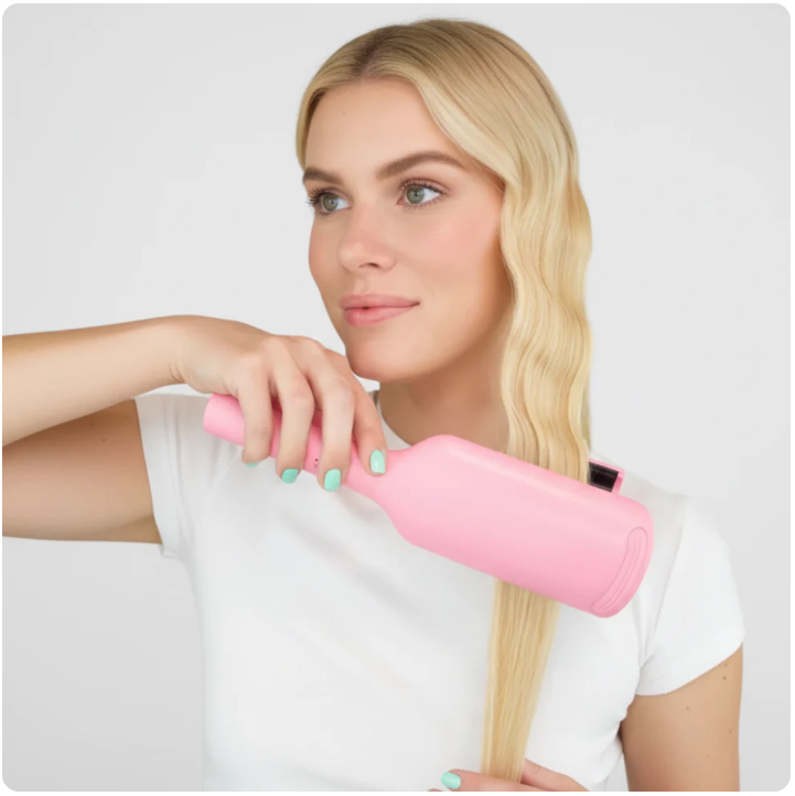 Yes. Our dual-barrel design works on all lengths from chin to waist. The compact shape makes it easy to maneuver whether you have a bob, lob, or long layers. Works on straight, wavy, thick, and fine hair with adjustable heat settings.